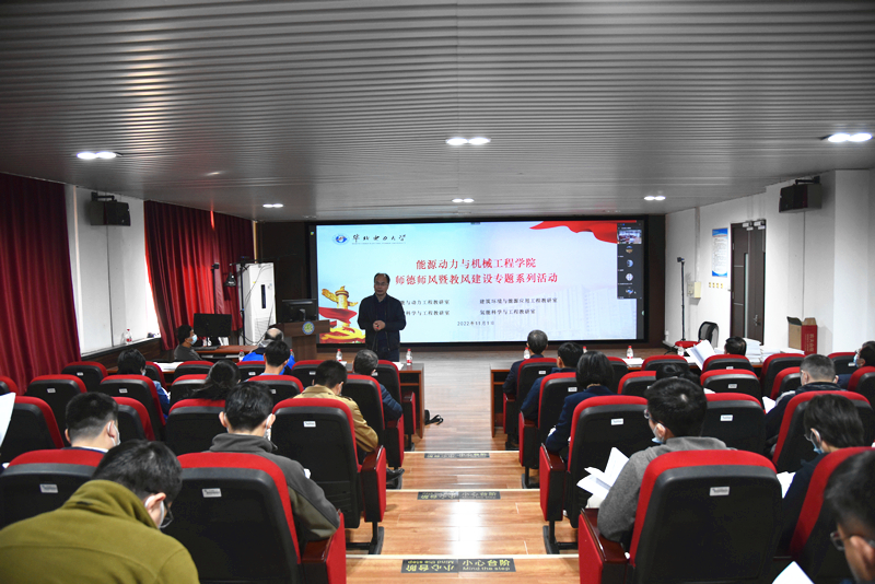 师德师风暨教风建设第二场专题活动走进热能与动力工程、储能科学与工程、氢能科学与工程、建筑环境与能源应用工程4个教研室。学院院长杜小泽、党委书记肖万里、组织员李辉、副书记董剑、副院长沈国清、张永生、张宇宁以及相关教师代表参加了本次活动,杜小泽主持会议。