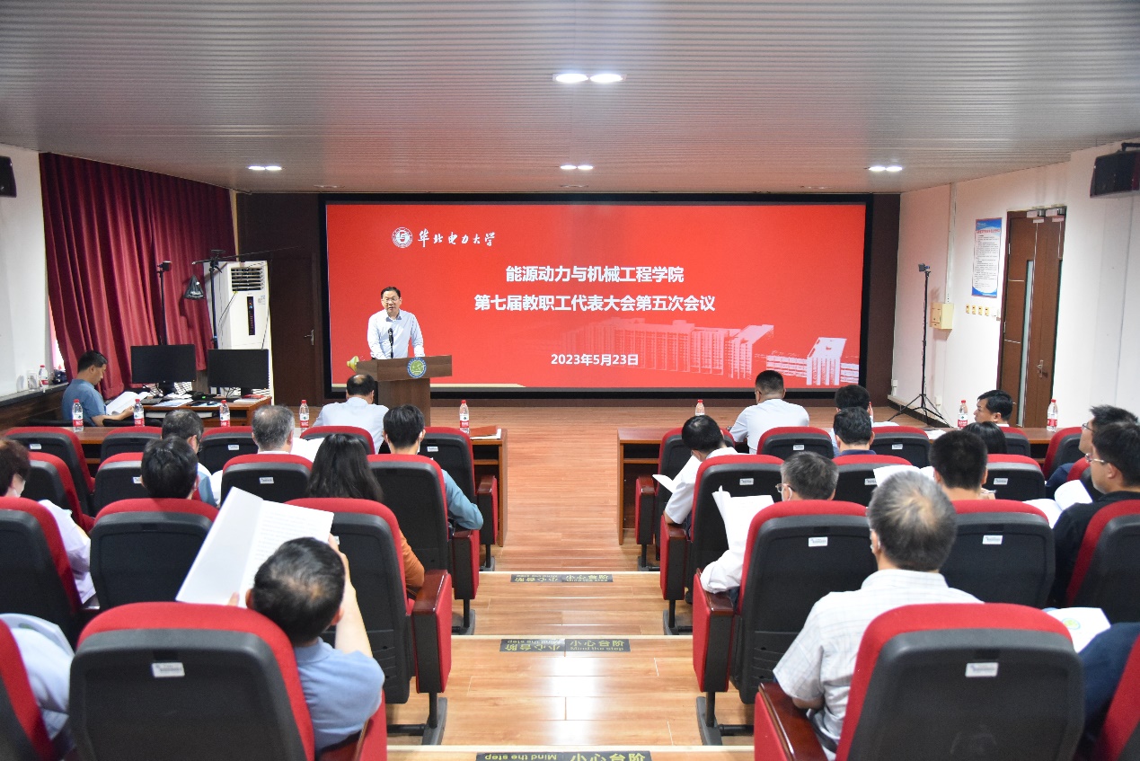 第七届教职工代表大会第五次会议顺利召开,学院党委书记肖万里、院长杜小泽、组织员李辉、副书记董剑、副院长沈国清、张宇宁以及学院60余名教职工代表参加了本次会议,学科建设处处长李惊涛、研究生院副院长张乃强、能源电力创新研究院部分教授代表列席了本次教代会。肖万里主持会议。